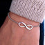 • Silver infinity hand chain bracelet made of alloy and crystal,superior quality looks pretty in person.Adjustable,free size for most.