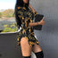 Women'S Nightclub Lace Short Cross-Border Bend Hem Chain Print Belt Casual Shirt Dress - Afro Fashion Hive