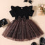 Short Sleeve Bow Leopard Print Tulle Princess Black Pitted Mesh Dress - Afro Fashion Hive