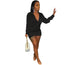 Autumn Long Sleeve Turn Down Collar V Neck Satin Mini Dress - Afro Fashion Hive