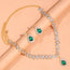 Women Green Water Drop Rhinestone Exquisite Round Crystal Necklace Set
